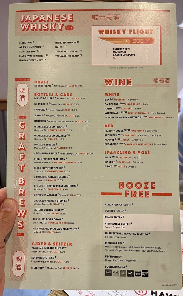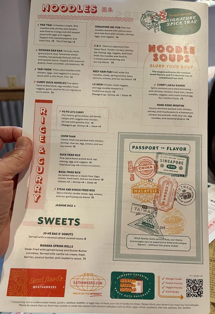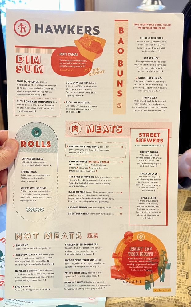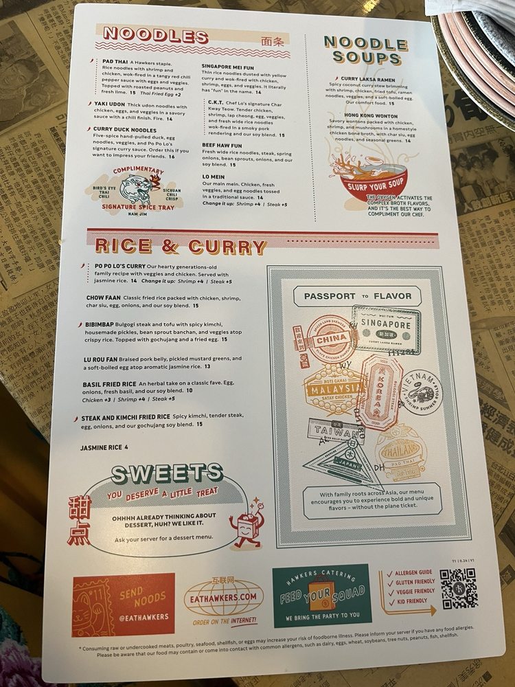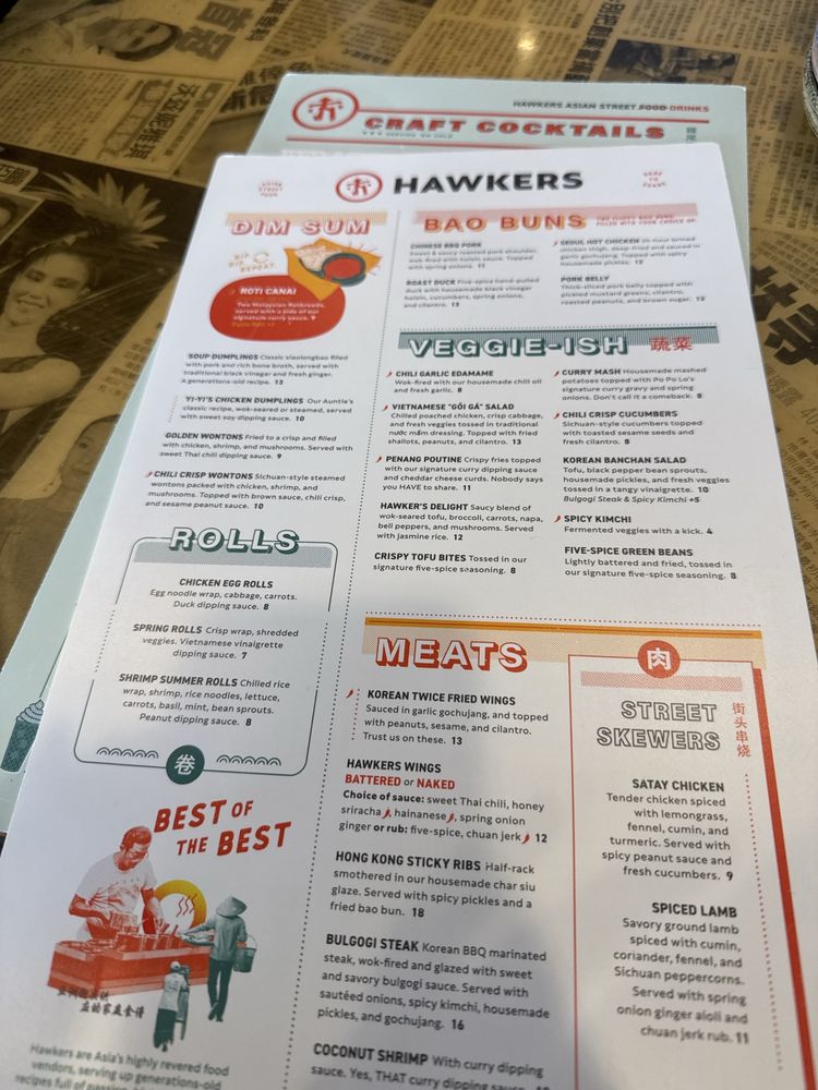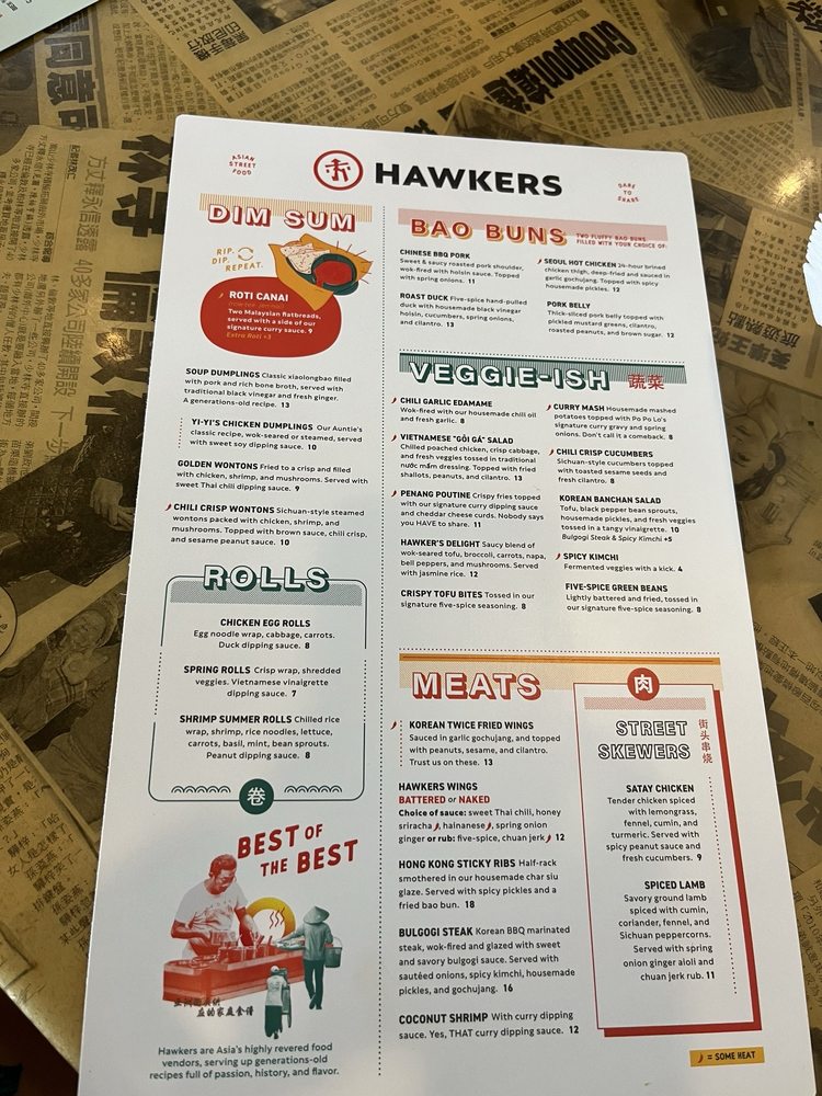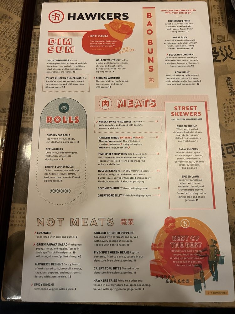 Introducing the menu at Hawkers Asian Street Food, located in Orlando, FL, offers a wide range of Tapas/Small Plates, Pan Asian dishes, and flavorful Ramen options. The restaurant caters to various dietary needs with Pescatarian, Soy-Free, and Vegan options. The casual yet trendy atmosphere includes outdoor seating and a full bar, making it suitable for various occasions like lunch, dinner, or happy hour. Customers praise the diverse menu, with must-try items like curry laksa ramen, roti, and bulgogi steak. Despite occasional service delays due to popularity, the consistently excellent food and attentive staff make Hawkers a top choice for indulging in authentic Asian tapas. Overall, the blend of fusion and authentic Asian flavors combined with the lively street food ambiance creates a memorable dining experience at Hawkers.
